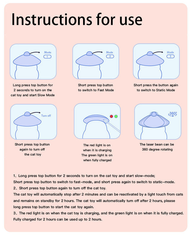 Two Toys in One, Double the Fun Description: Functions both as a handheld interactive laser teaser and a self-operating automatic Tumbler toy. One device, two ways to playcatering to your cat's needs at different times.